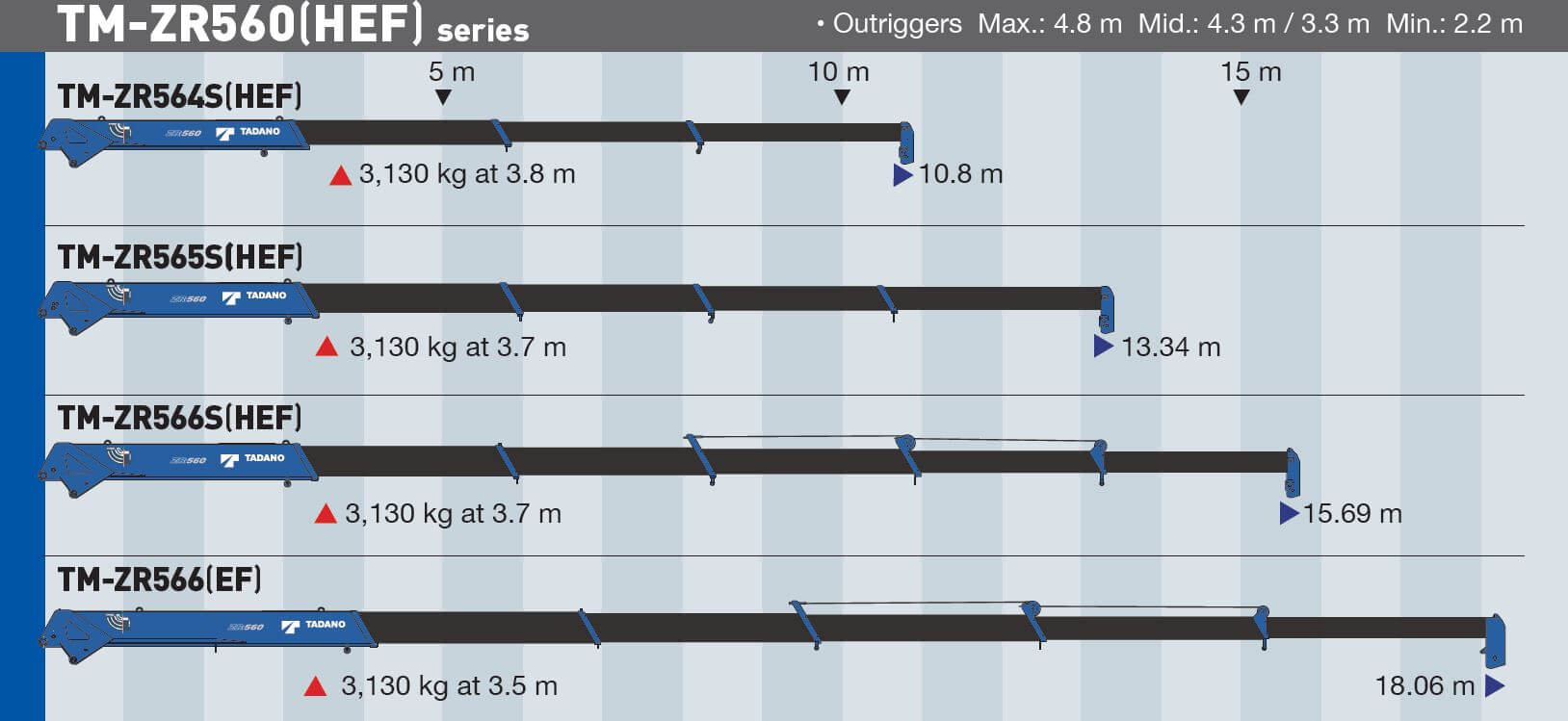 - Boom Length: 4.69m - 18.06m